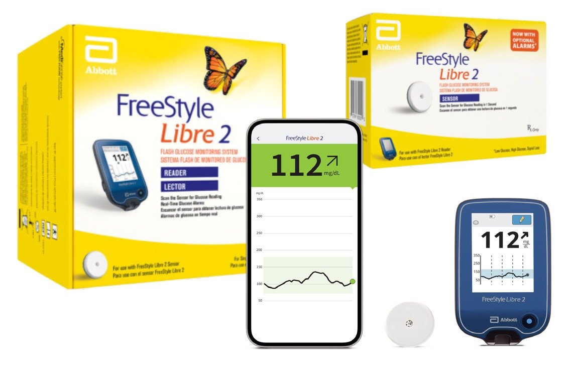 - Handheld reader and sensor worn on the upper arm, compatible with the FreeStyle Libre 2 app.